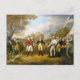The scene of the surrender of the British General John Burgoyne at Saratoga, on October 17, 1777, was a turning point in the American Revolutionary War that prevented the British from dividing New England from the rest of the colonies. The central figure is the American General Horatio Gates, who refused to take the sword offered by General Burgoyne, and, treating him as a gentleman, invites him into his tent. All of the figures in the scene are portraits of specific officers. Trumbull planned this outdoor scene to contrast with the Declaration of Independence beside it. John Trumbull (1756–1843) was born in Connecticut, the son of the governor. After graduating from Harvard University, he served in the Continental Army under General Washington. He studied painting with Benjamin West in London and focused on history painting.