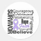 Be inspired and be proud to show your survivorship from cancer with our exclusive collection of General Cancer Survivor Awareness Collage T-Shirts, Merchandise, Apparel & Gifts highlighting a distressed lavender ribbon with powerful slogans of Courageous, Determined, Perseverance, Fighter, Hope, Faith, Strength and Believe. This design is available on a variety of shirts, hats, bags, mugs, buttons and more.
