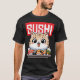 Feast your eyes on this delightful illustration of a cheerful cat having the ultimate sushi feast! The digital drawing captures an adorable cat with wide, excited eyes and a playful tongue, signalling its eagerness to enjoy the scrumptious sushi spread before it. With meticulous attention to detail, the array of sushi — from the glistening salmon nigiri to the perfectly rolled maki with a verdant wrap — is rendered with such vividness and colour, you can almost savour the flavours. This charming image marries the cuteness of a fluffy feline with the artistry of Japanese cuisine, making it an enchanting visual treat for both cat aficionados and sushi lovers. It's a whimsical representation of joyous indulgence, sure to bring a smile and a hint of hunger to all who gaze upon it.