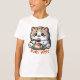 The "Sushi Cat" is captured in the midst of a joyous meal, using its tiny paws to masterfully handle a set of chopsticks, a feat that speaks to the whimsical nature of this design. Clutched between the chopsticks is a succulent piece of sushi, the cat’s treat of choice.