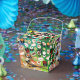 Custom gift box decorated with rainbow circles and various forms of sushi