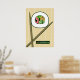 Poster with a fun and unique sushi design. Chopsticks hold a sushi roll with the word, "sushi" being the ingredients. The design has a background that resembles a sushi rolling mat and the exclamation, "mmm" is found at the bottom of the artwork. A great poster to express your love for sushi.