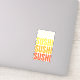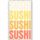 Simple colourful text design with "Sushi, Sushi, Sushi, Sushi" text in beige, yellow, orange and red colours