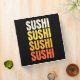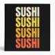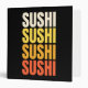 Simple colourful text design with "Sushi, Sushi, Sushi, Sushi" text in beige, yellow, orange and red colours