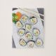 Some yummy and delicious sushi rolls, Japanese food. This is a fun puzzle to make but it will make you crave sushi!