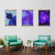 Trois fractales dans les tons cool bleu, turquoise et violet.