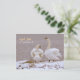 Julkort med vintermotiv: två svanar som visar upp sin vackra vita fjäderdräkt och ett fågelgrund med nysnö. Allt det vita står tydligt ut mot en bakgrund av mörkare havsvatten. Fotografiet är från mars månad, de båda svanarna skall just börja bygga bo. Man kan lätt ändra på texterna på framsidan av kortet genom att skriva över exempeltexten i rutan under rubriken 'Anpassa'.