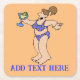 Comical beach, pool, swimsuit woman, add, edit text to personalize.