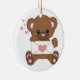 Heart shaped kiss on an envelope a pink teddy bear is holding.
