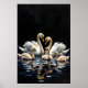 The contrast between the glowing white feathers and the deep dark background gives the artwork a timeless, refined presence. Soft reflections and carefully controlled light enhance each swan individually, allowing the composition to feel balanced, harmonious, and emotionally warm. The overall mood is serene, graceful, and quietly powerful.