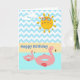 Cute Personalized Birthday Card Swan Floats In Water with sun and patterned background. Custom card can be changed to fit your needs.