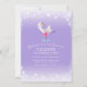 Girls swan on lake with stars first birthday invitations, featuring a cute whimsical ballet dancing swan with pink tutu watercolor painting. Personalize with your own birthday girls details. Background colour can also be changed if required currently purple. Other matching ballerina swan items available. Unique watercolor painting and design by Sarah Trett www.sarahtrett.com for www.mylittleeden.com on zazzle.