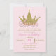 Swan Princess Pink & Gold Glitter Crown Birthday Invitation