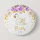 This cute and whimsical button can be personalized with a name or title, such as dad, grandpa, uncle, big brother etc. The design features an elegant swan and purple roses floral arrangements with faux gold glitter confetti. The text combines handwritten script and sans serif fonts for a stylish and modern look. This is perfect for a swan themed baby shower.