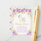 This cute and whimsical display baby shower features an elegant swan and purple roses floral arrangements with faux gold glitter confetti. The text combines handwritten script and sans serif fonts for a stylish and modern look. This is perfect for a swan themed baby shower.