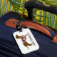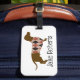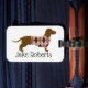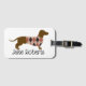 Cute luggage tag features sweatered Dachshund dog and personalized text