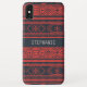 This Christmas phone case features a sweater style red and black pattern design . Personalize it with a name.