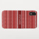 This Christmas phone case features a sweater style red and white stripe design . Personalize it with a name.