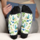 Cute light blue or red Dala horse and floral pattern on socks. A design inspired by the beautiful folk art of Sweden.