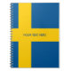 Swedish flag of Sweden spiral notebook journal. Custom office and school supplies for men women and kids. Great for language teacher, accounting, keeping budget, homework, office, business, company, shop, translator, travel, party, planning, wedding, teaching etc. Add your own text optionally. Writing paper accessories. Transferable design to other products. Scandinavian pride.