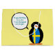 Ms. Penguin loved her vaca to Sweden. She got herself a vest of the blue and yellow Swedish Flag. Here, she says whatever you like when you customize the words in her talk bubble on party items. You can change the background colour to match your personal taste or party theme. The flag of Sweden features a blue background with a yellow Nordic or Scandinavian Cross.