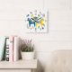 This wall clock has a Swedish folk art design of Dala Horse in Sweden’s flag colours of blue and yellow. There are also matching folk art flowers in the same colour. You can make the background pattern on this clock small or larger.