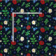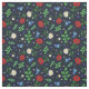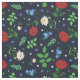 Dark blue fabric with a Swedish folk floral pattern of poppies, oxeye daisies, violets, forget-me-nots, and elm leaves.