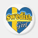 Leuke magneet met een hart afgebeeld met de Zweedse vlag erop. Op de tekst staat: Swedish girl De achtergrond is in de kleur wit. Leuk om te geven als cadeau of voor jezelf om te laten zien dat je trots bent om Zweeds te zijn. kleuren: geel, blauw en wit.
