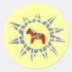 The design on this sticker is from and acrylic painting and a carved, painted wooden horse by Julia Morrill