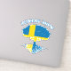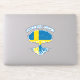 Stylish vinyl sticker for your electronics, car window, sports equipment and more, featuring a tree with roots silhouette with the flag of Sweden fill and "Swedish Roots" curved top text on light grey background.