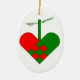 Traditional Woven Paper Heart from Sweden in cheerful red and green with a sprig of Christmas holiday mistletoe. Scandinavian arts and crafts.