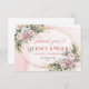 Elegant boho Quinceañera thank you card in blush pink and rose gold with floral eucalyptus greenery, perfect for expressing gratitude after a Sweet 15 celebration.
