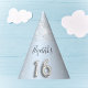 Sweet 16 baby blue silver glitter name party hat