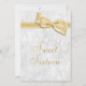Elegant Sweet 16 Birthday Party celebration invitations for teenage girls. Sixteenth / Sweet Sixteen birthday party invites. Beautiful white damask pattern background with a pretty, stylish gold bow and ribbon image. These glamourous, chic, classy invites are beautifully sophisticated and are decorated / printed on both sides. PLEASE NOTE: All invites on Zazzle have flat printed images. Bow and ribbon images purchased from digital-designs-by-elena. If you need any assistance customizing your invitation please contact me through my store and I will be happy to help.