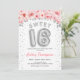 Sweet 16 birthday party invitation. Elegant design in faux glitter silver with floral accent. Invite card with silver number 16 balloons, script font with confetti. Blush pink and white. Perfect for a stylish sixteenth bday celebration. Message me if you need custom age.