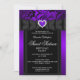 Sweet 16 Birthday Party Purple Heart Damask Invitation. Black bow with jewel heart & black floral design. PLEASE NOTE all flat images! They Do NOT have real Bows, Diamonds or Jewels!!