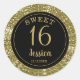 Stylish sweet 16 envelope seals for the classy black and gold glitter 16 birthday party invitations.