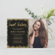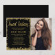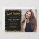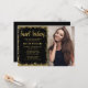 Modern black and gold faux glitter sweet 16 photo invitations. These trendy sweet sixteen invites are easy to personalize for your party. Designs are flat printed illustrations/graphics - NOT ACTUAL GOLD GLITTER.