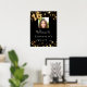 A welcome board for a girly and glamourous Sweet 16, 16th birthday party. A black background decorated with faux gold stars. Personalize and add a name.