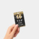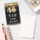 A modern, stylish and glamourous VIP badge for a Sweet 16 birthday party. A black background decorated with faux gold confetti. With the text: VIP. Personalize and add name and party details.