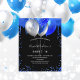 A girly and feminine Sweet 16, 16th birthday party invitation. On front: A chic black background. Decorated with royal blue faux glitter drips, paint dripping look and balloons. Personalize and add a name and party details. The name is written with a hand lettered style script.