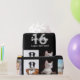 For a 16th birthday party for a woman, celebrating her life with a collage of 10 of your own photos. Photo of family, friends, pets, vacations. Templates for a name and the age 16 and a date. White and grey coloured letters. Elegant black background.