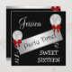 Sweet 16 Black White Silver Red Bows Balloons Invitation