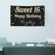 Personalized Sweet 16 birthday party banner for teenage girls with beautiful shiny gold confetti graphic images border with sparkles. Chic modern Sweet 16 Happy Birthday fixed text with faux silver and gold bling effect and sparkles on a classic black background. If you need any assistance customizing your product please contact me via my store and I will be happy to help. PLEASE NOTE: These are flat printed graphic images - no raised parts or real textures.