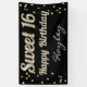 Sweet 16 Bling Typography Gold Confetti Black Banner