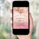 A rose gold and blush pink gradient background. Decorated with rose gold drips, paint dripping look and balloons. Personalize and add a name and party details. The name is written with a hand lettered style script