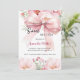 An elegant white background, decorated with a large pink bow and pink watercolored flowers. Personalize and add a name and party details.