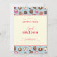 Sweet sixteen birthday party invitation with a delicious chocolate and candy confectionery pattern full of sweet treats and temptations! Perfect for celebrating this milestone birthday in style.