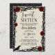 Sweet 16 Fairytale Red Rose & Thorn Modern Glitter Invitation