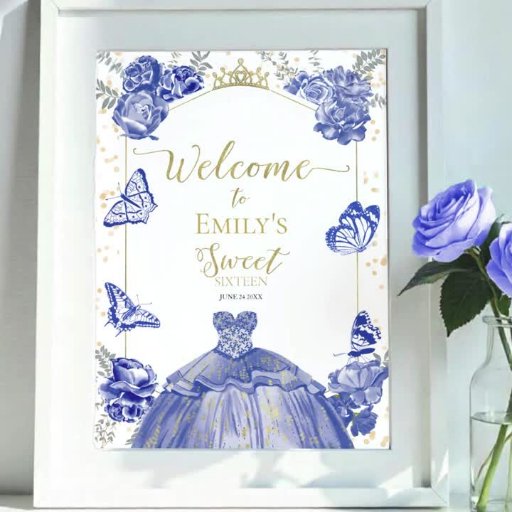 Sweet 16 Invitation Royal Blue Dress Butterfly